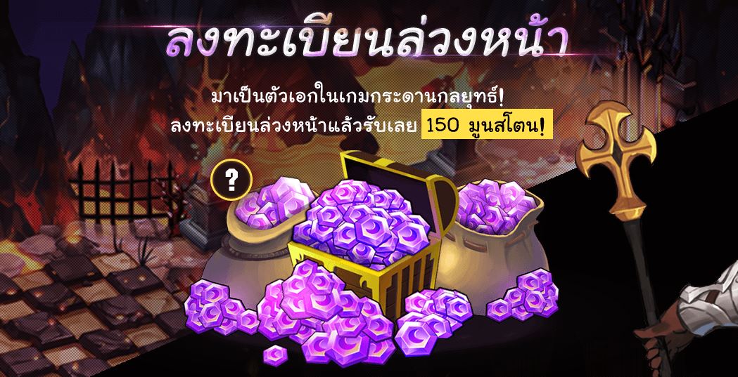 เกมจะเปิดให้ลงทะเบียนล่วงหน้าไปจนถึงวันเปิดให้บริการอย่างเป็นทางการ ทุกคนที่ลงทะเบียนไว้จะได้รับ 150 มูนสโตนเป็นรางวัลเอาไว้ซื้อไอเทมในเกมและซัมมอนตัวละคร ยังไม่หมด! ผู้เล่นที่ลงทะเบียนล่วงหน้าผ่าน Google Play หรือ Apple App Store ก็ยังจะได้รับรางวัลพิเศษอีกด้วย