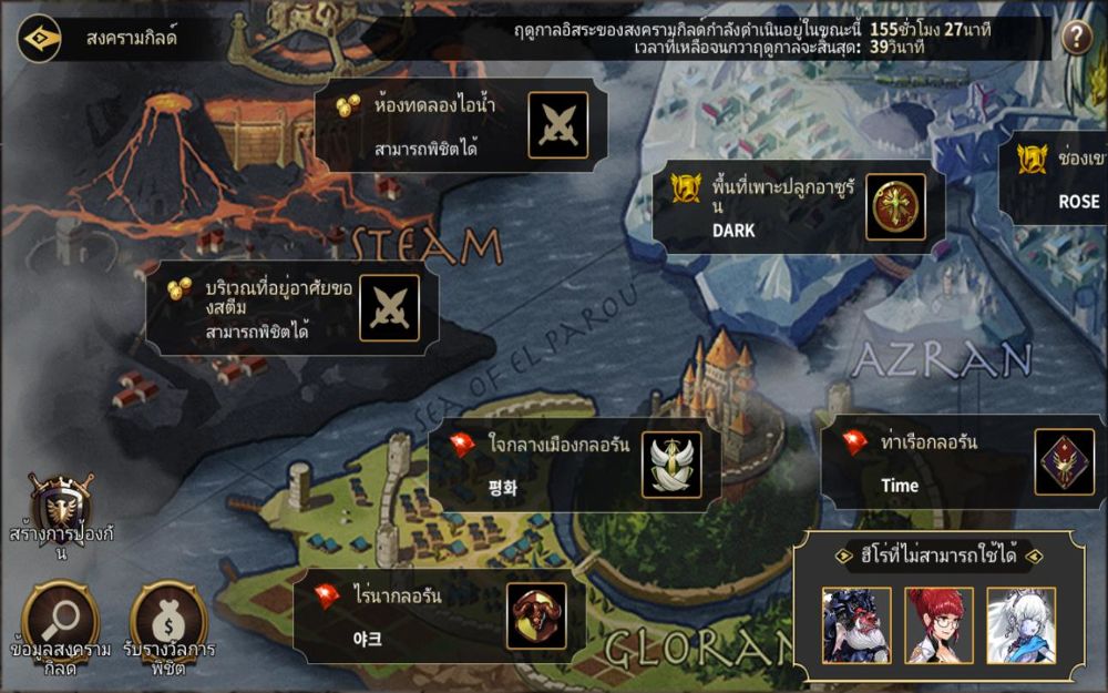 ผู้เล่นสามารถหาข้อมูลของสมาชิกกิลด์ที่เป็นคู่แข่งเพื่อวางกลแผนการรบในช่วงเวลา Free Season และเมื่อการแข่ง Regular Season เริ่มขึ้น สมาชิกกิลด์จะเข้าสู่การแข่งขันแบบเดี่ยวเพื่อไต่เต้าในการจัดอันดับและสงครามระหว่างกิลด์นี้เน้นการยึดครองพื้นที่เป็นหลัก สมาชิกกิลด์ที่เข้าร่วมสงครามเท่านั้นจึงจะมีสิทธิ์ได้รับรางวัลเมื่อจบฤดูการแข่งขัน