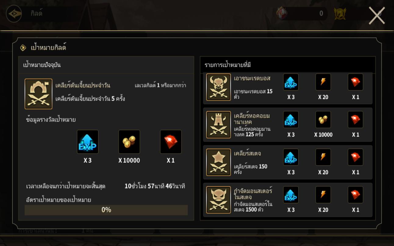 นอกจากระบบ Guild War แล้วยังมีระบบอื่นที่เกี่ยวข้องกับกิลด์อัพเดทเข้ามาด้วยได้แก่ ระบบเป้าหมายกิลด์ ระบบนี้จะเป็นเหมือนกับระบบภารกิจประจำวันของกิลด์ โดยจะมีข้อมูลระบุอย่างชัดเจนว่าสมาชิกกิลด์ต้องไปทำอะไร เช่น เคลียร์หอคอยมานาแทคจำนวน 125 ครั้ง เมื่อทำตามเงื่อนไขได้ก็จะได้รับรางวัล กิลด์ไหนมีสมาชิกกิลด์เยอะจะทำภารกิจพวกนี้ได้อย่างสบายๆ