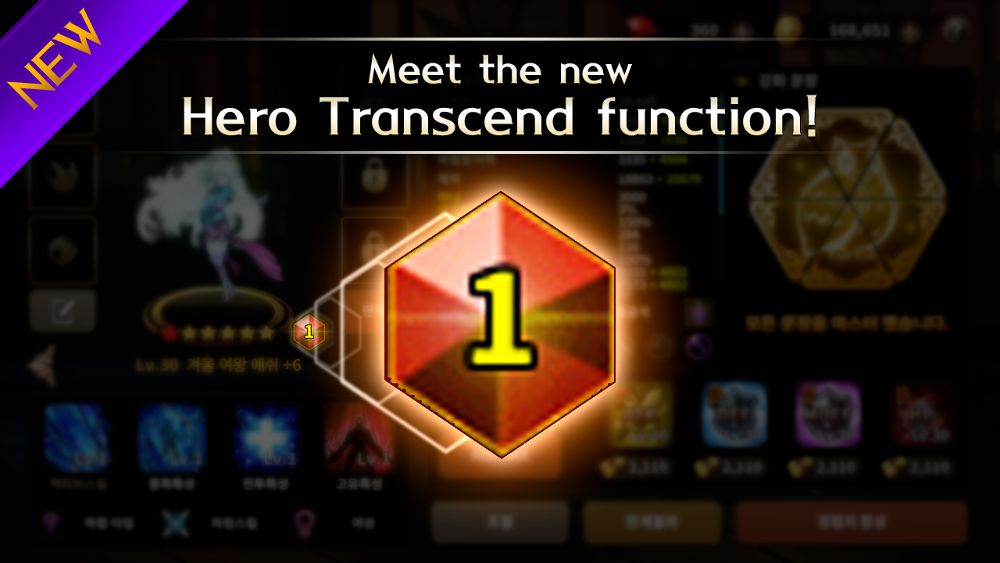 ระบบ "Hero Transcendence" หรือระบบก้าวข้ามขีดจำกัด เป็นระบบที่สามารถทำให้ผู้เล่นพัฒนาฮีโร่ระดับ 6 ดาวให้ก้าวข้ามเกินระดับสูงสุดในปัจจุบันไปได้ (Lv.30, +6 enhancement, max stats) โดยการนำเอาฮีโร่ตัวเดียวกันมาเป็นเครื่องสังเวย และฮีโร่ที่ก้าวข้ามขีดจำกัดไปแล้วก็จะได้รับค่าสเตตัสพื้นฐานเพิ่มขึ้น