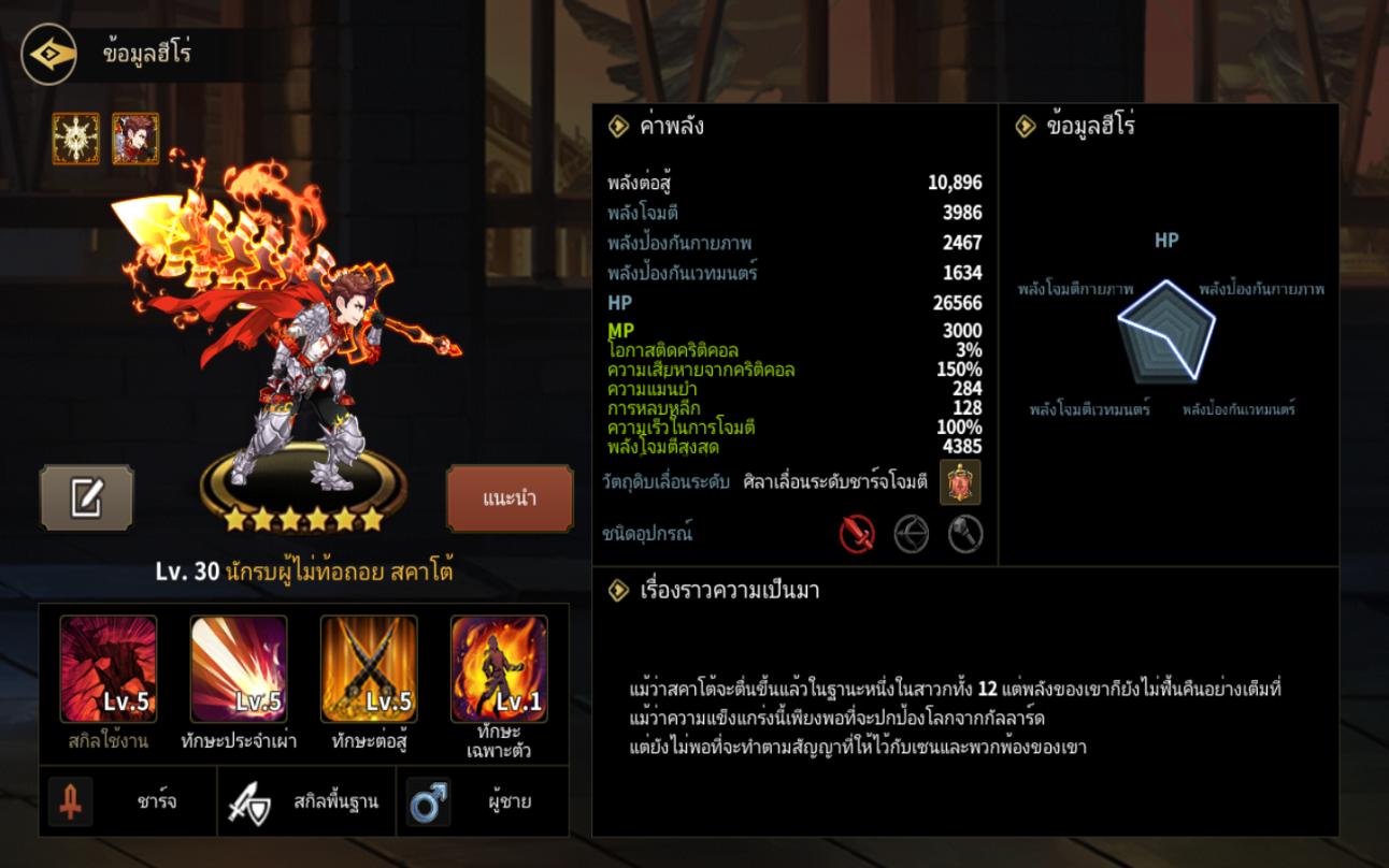 •Skato's Bravery : เพิ่มค่าต้านทานสถานะเผาไหม้ให้ฮีโร่ทั้งหมดในทีม