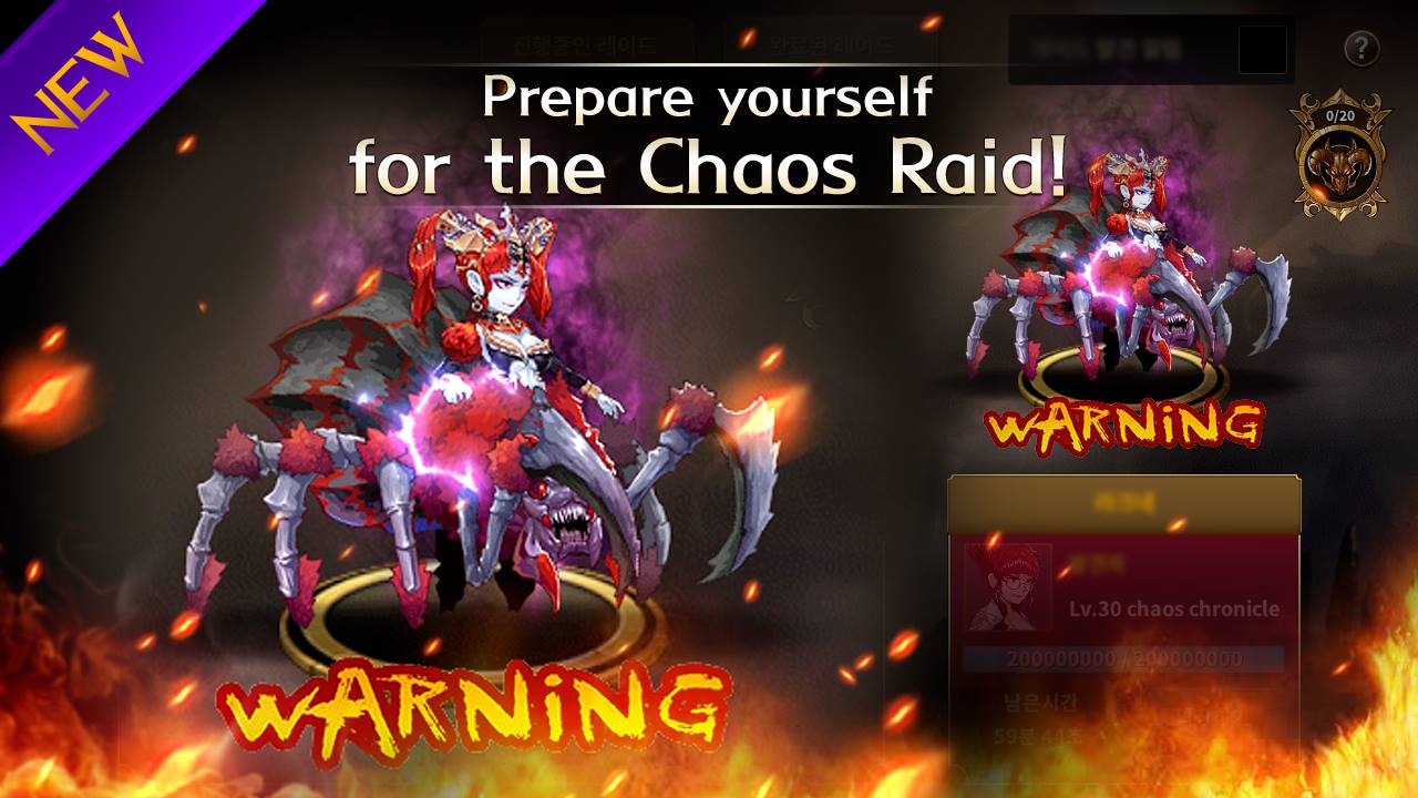 Chaos Chronicle เกมแนว SRPG (วางแผนการรบ) จาก Nexon ที่รองรับทั้งหมด 8 ภาษา และมีผู้เล่นมากถึง 136 ประเทศ ฉลองยอด 1 ล้านดาวน์โหลดด้วยการอัพเดทแพทช์ใหญ่ ระเบิดศึกการต่อสู้แห่งเกียรติยศกับระบบ Guild War ที่ทุกคนรอคอย พร้อมทั้งยังมีการอัพเดทระบบใหม่และอัพเกรดระบบเก่าให้มีความน่าเล่นและสนุกยิ่งกว่าเดิม นอกจากนั้นยังมีของขวัญพิเศษมอบให้กับผู้เล่นทุกท่านเมื่อเข้าเกมจะได้รับ 300 รูบี้ และสำหรับผู้เล่นที่ไม่ได้เข้าเกมนานกว่า 15 วันขึ้นไปจะได้รับ 300 รูบี้ กับตั๋วสุ่มฮีโร่ 6 ดาว x1 อ่านรายละเอียดเพิ่มเติมเกี่ยวกับแพทช์นี้ด้านล่างได้เลย