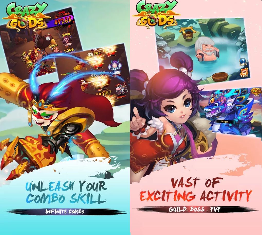 เกม Crazy Gods เป็นเกมแนวผจญภัย RPG ผสมกับแนววางแผนกลยุทธ Strategy ที่จะมีพื้นหลังเรื่องราวเกี่ยวกับการต่อสู้และสงครามของสามอาณาจักรยิ่งใหญ่ เราจะพบตัวละครชื่อดังจากตำนานมากมายมาอยู่ในรูปแบบตัวละคร สองมิติ เช่น กวน อู หรือลิโป้ เราสามารถ Summon ตัวละครฮีโร่ออกมาร่วมทีมได้มากมายถึงมากกว่า 300 ตัวละคร ซึ่งความสามารถ พลังต่าง ๆ ก็จะแตกต่างออกไป แถมยังระบบ Guild ที่เราสามารถหาเพื่อนหรือมิตรภาพใหม่ ๆ จากเกมได้อย่างสบาย นอกจากนี้แล้วยังมีระบบ Pet สัตว์เลี้ยงสุดน่ารักที่สามารถช่วยเหลือเราได้ในขณะต่อสู้อีกด้วย ด้วยระบบที่น่าสนใจและอีเวนท์ต่าง ๆ ที่มีให้ทำประจำวัน จะทำให้เล่นเกมนี้ได้อย่างไม่เบื่อเลยค่ะ !