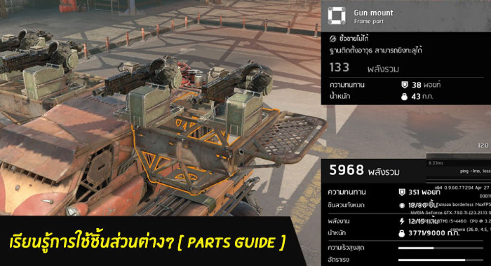 ฐานรองอาวุธชั้นดีคือ Gun mount เพราะมี HP สูงสุดในชิ้นส่วนประเภทนี้