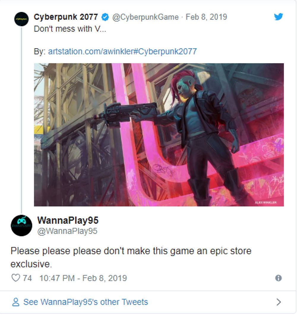 หลังจากมีกระแสเกี่ยวกับ Epic Game Store ผู้เล่นหลายคนก็กังวลว่าทางค่าย CD Projekt RED จะเอากับเค้าด้วยอีกคนเลยมีคนไปทวิตถามกันอย่างมากมาย โดยเชิงขอร้องว่าอย่าทำเกมนี้ลง Exclusive Epic Game Store อีกเกมเลย ทางผู้พัฒนาเค้าก็ได้รีทวิตตอบกลับมาว่า ไม่เป็นอย่างนั้นแน่อน ตัวเกมจะยังคงลงให้กับแพลตฟอร์มหลักๆอย่าง Steam ด้วยอยู่แล้ว แต่จะไปลงให้ทาง Epic Game Store ด้วยหรือไม่นั้นก็อีกเรื่องนึง เอาเป็นว่าแฟนๆเกมนี้อุ่นใจได้จ้า ไม่มีการเอกซ์คลูซีฟแน่นอน ว่าแต่คำถามคือตอนนี้เกมจะออกเมื่อไรดีกว่า!
