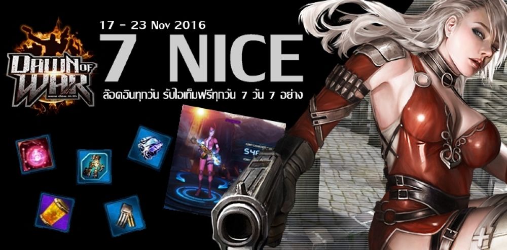 DAWN of WAR จัดกิจกรรม 7 NICE ล็อคอินทุกวัน รับไอเท็มฟรีทุกวัน 7 วัน 7 อย่าง