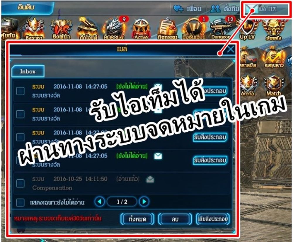 - หากจำนวนวันของอาวุธยังเหลืออยู่ เมื่อกดใช้จะเป็นการเพิ่มจำนวนวันจากของเดิมที่มี