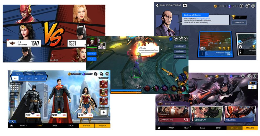 ► คุณสามารถจะเลือกจัดทีมระหว่างซูเปอร์ฮีโร่กับมหาวายร้ายได้ หรือจะสร้างดรีมทีมของคุณโดยการนำคู่ปรับตลอดการอย่างแบทแมนและโจ๊กเกอร์มารวมมือกันเพื่อปกป้องโลก นอกจากนั้นยังมีการแบ่งเป็นแฟมิลี่แยกตามเนื้อเรื่อง หากคุณรวมรวบสมาชิกแฟมิลี่ได้ทั้งหมด ก็จะได้รับเอฟเฟกต์แฟมิลี่ ที่จะช่วยเพิ่มค่าความสามารถต่างๆ ให้กับทีมของคุณ นอกจากนั้นตัวละครทุกตัวก็จะ มีสกิลเฉพาะตัว ทีเป็นเอกลักษณ์ เพิ่มความสามารถในรูปแบบที่แตกต่างกันให้แก่ทีมอีกด้วย
