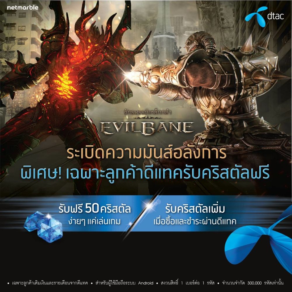 1.ลูกค้า DTAC รับ 50 คริสตัลในเกมฟรี! แค่เล่นเกม EvilBane