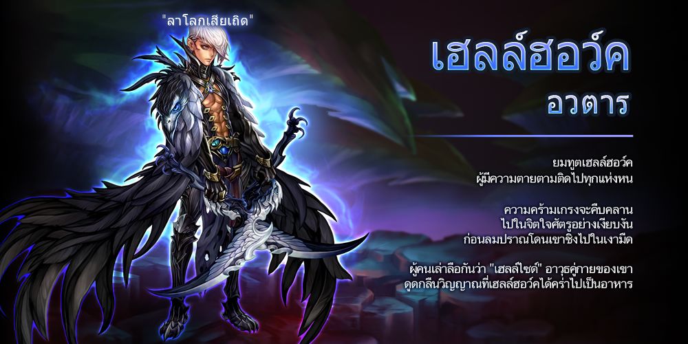 สำหรับยมทูตเฮลล์ฮอวค์ ชายผู้นำพาความตายไปยังทุกที่ที่ไปเยือน เป็นตัวละครสาย DPS สุดโหดที่ใช้อาวุธเป็นมีดสั้น และสกิลอย่าง "เงาเชือดเฉือน" และ "เคียวยมทูต" ก็เพียงพอที่จะปลิดชีพศัตรูแล้ว บางสกิลยังสามารถเพิ่มพลังโจมตีระยะประชิดได้อีกด้วย