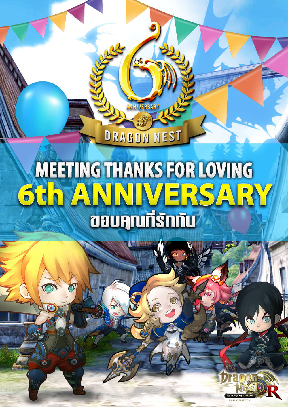► ฉลอง Dragon Nest ครบรอบ 6 ปี เปิดรับสมัครเหล่านักรบมังกรเข้าร่วมงาน Meeting สุดพิเศษสไตล์ Dragon Nest พร้อมรับฟังแผนการอัพเดท และร่วมสนุกกับกิจกรรมแจกของรางวัลแบบ limited edition จำนวน 60 ท่าน (รวมเพื่อนที่พามาด้วย) ตั้งแต่วันนี้ – 20 มีนาคม 2561 รายละเอียดเพิ่มเติม [คลิก]
