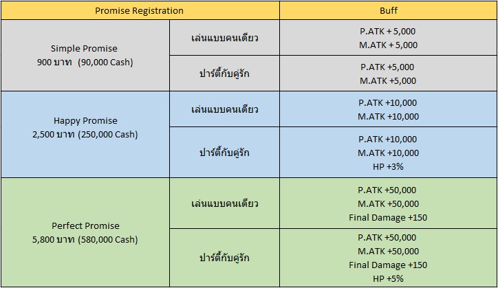 Happy Promise Registration จากปกติ 250,000 Cash (2,500บาท) ลดเหลือ 170,000 Cash (1,700บาท)