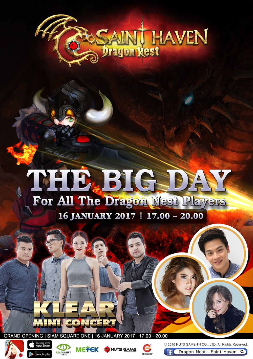 Dragon Nest - Saint Haven จัดงาน Grand Opening 16 ม.ค.นี้ ภายใต้ชื่องาน “THE BIG DAY” For All The Dragon Nest Players ต้อนรับปี 2017 เรียกว่าจัดเอาฤกษ์เอาชัยตั้งแต่ต้นปีกันเลยทีเดียว สำหรับค่าย Nuts Game ที่มาแรงตั้งแต่ช่วงปลายปีที่แล้ว และสร้างความแรงแบบต่อเนื่องกันอีกในช่วงต้นปีกับงานเปิดตัวแบบยิ่งใหญ่อลังการ ที่สยามสแควร์วัน พร้อมเหล่า Celebrity ชื่อดังที่จะมาสร้างความสนุก และให้แฟนคลับได้กระทบไหล่กันแบบใกล้ชิดภายในงาน ถึง 3 คนด้วยกัน คนแรกคือ ดาราสาวตัวเล็กน่ารัก เจ้าของรอยยิ้มหวานอย่าง “เต้ย” จรินทร์พร และหนุ่มหล่อหน้าใสกิ๊ก “มาร์ช” จุฑาวุฒิ จากซีรีส์สุดฮอต Hormones พร้อมด้วยนักแสดงเจ้าบทบาทอย่าง “มาร์กี้” ราศรี นางเอกสาวสวยนัยน์ตาคม ที่จะมาร่วมกิจกรรม เซอร์ไพรส์สาวก Dragon Nest ในงาน Grand Opening: The Big Day For All The Dragon Nest Players ใครที่เป็นแฟนเกม หรือแฟนคลับของ เต้ย มาร์ช และมาร์กี้ ห้ามพลาดที่จะมาร่วมสนุกในงานอย่างเด็ดขาด! ไม่เพียงเท่านั้น ยังมีศิลปินเสียงทรงพลังวง เคลียร์ (Klear) มาสร้างความมันส์แบบสุดๆ กับ Mini Concert ในช่วงท้ายงานอีกด้วย นอกจากจะมีเหล่าดารา-นักร้อง มาสร้างสีสันห้ในงานแล้ว แฟนเกมดราก้อนเนสที่มาร่วมงานยังมีโอกาสลุ้นรับของรางวัล Premium Dragon Nest Set และรางวัลใหญ่อย่าง iPhone7 จับแจกสดๆในงานกันเลยที่เดียว! ผู้มาลงทะเบียนเข้าร่วมงานทุกท่านจะได้รับไปเลยฟรีๆ Item Code แบบพิเศษสุด! จากเกม Dragon Nest - Saint Haven! เฉพาะที่งาน THE BIG DAY เท่านั้น!สามารถลงชื่อเข้าร่วมงาน หรือลุ้นรับของรางวัลก่อนใครได้ที่ https://www.facebook.com/events/1165068993607515 Grand Opening: THE BIG DAY For All The Dragon Nest PlayersDATE | 16 JANUARY 2017TIME | 17.00 - 20.00VENUE | SIAM SQUARE ONE (ลานหน้าสยาม สแควร์ วัน) ไปที่งานเลย! ประจันหน้า ท้ามังกรพร้อมกับเรา! ดาวน์โหลดเกมที่นี่ อัพเดทข่าวสารเกมได้ที่Facebook fan page: https://www.facebook.com/DNmobileTHLine: @nutsgameWebsite: dn.nutsgame.net