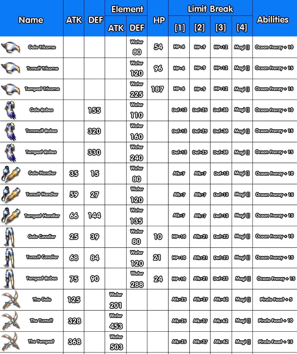 ของเซ็ทนี้ มีจุดเด่นที่พลังโจมตีเป็นเน้นธาตุน้ำ หาก Limit Break อาวุธถึงขั้นที่ 3 จะเพิ่มพลังโจมตี