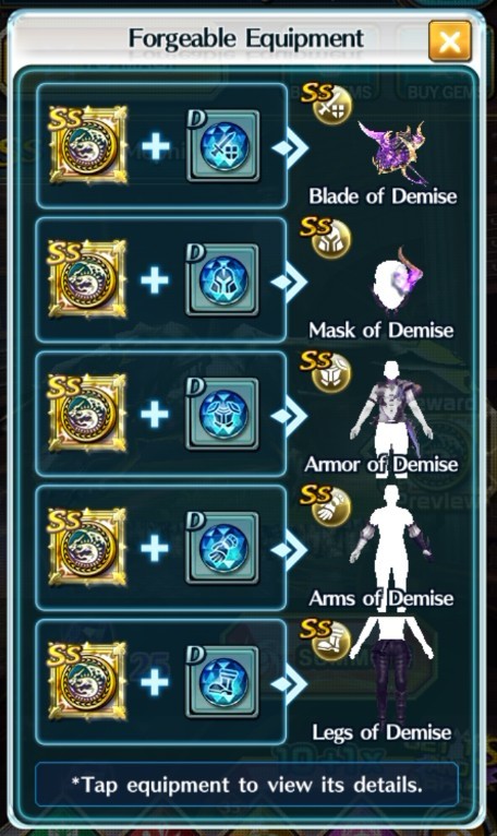 เผยข้อมูลเด็ดมาแล้ว!! ในคราวนี้เป็นอุปกรณ์สวมใส่นั้นเอง ซึ่งเจ้านี่จะแบ่งเซ็ทออกตามวัตถุดิบที่ใช้สร้างไอเทมเซ็ทนั้นๆ เช่น การสร้างไอเทมเซ็ท Demise