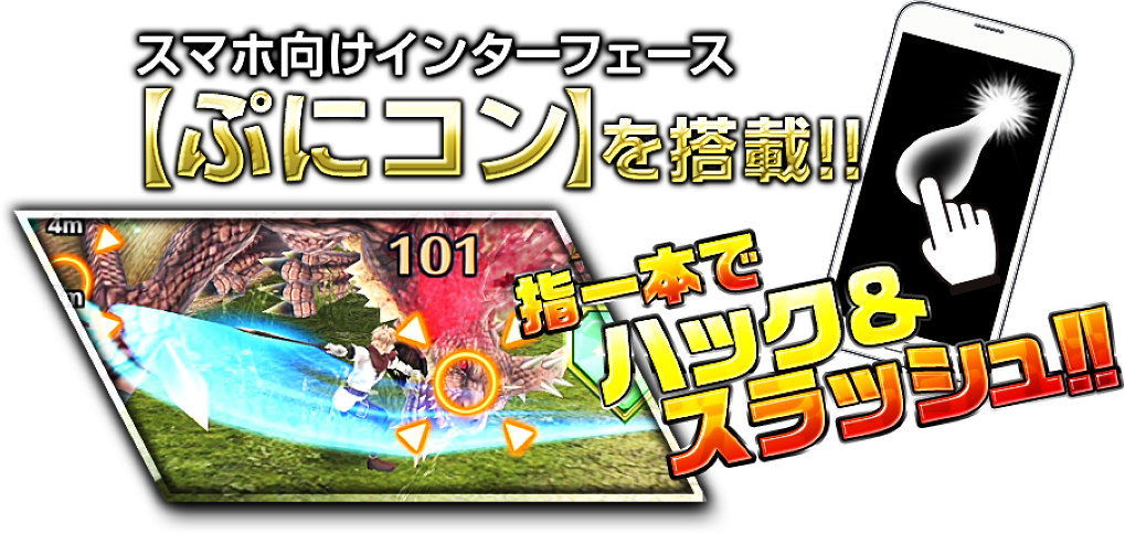 ภายในเกม มีอาวุธให้เราได้เลือกใช้ได้ถึง 5 ชนิดด้วยกัน(ในตอนนี้) โดยมีตั้งแต่ ดาบมือเดียว, ดาบสองมือ, ดาบคู่, หอก จนไปถึงอาวุธระยะไกลอย่าง ธนู เลยเชียวละ นอกจากอาวุธแล้ว ในเกมยังมีชุดเกาะในส่วนต่างๆ ให้เราได้เลือกใส่ถึง 1700 อย่าง สำหรับการควมคุมด้วย Punikon ทำให้ตัวเกม สามารถควบคุมได้ง่ายมากยิ่งขึ้น ผ่านนิ้วเพียงนิ้วเดียวเท่านั้น นอกจากนี้ ตัวเกมยังไม่เกจ Stamina เหมือนเกมล่ามอนสเตอร์เกมอื่นๆ ทำให้เกมนี้มีรูปแบบ Action ที่รวดเร็วยิ่งกว่าเกมอื่นๆ