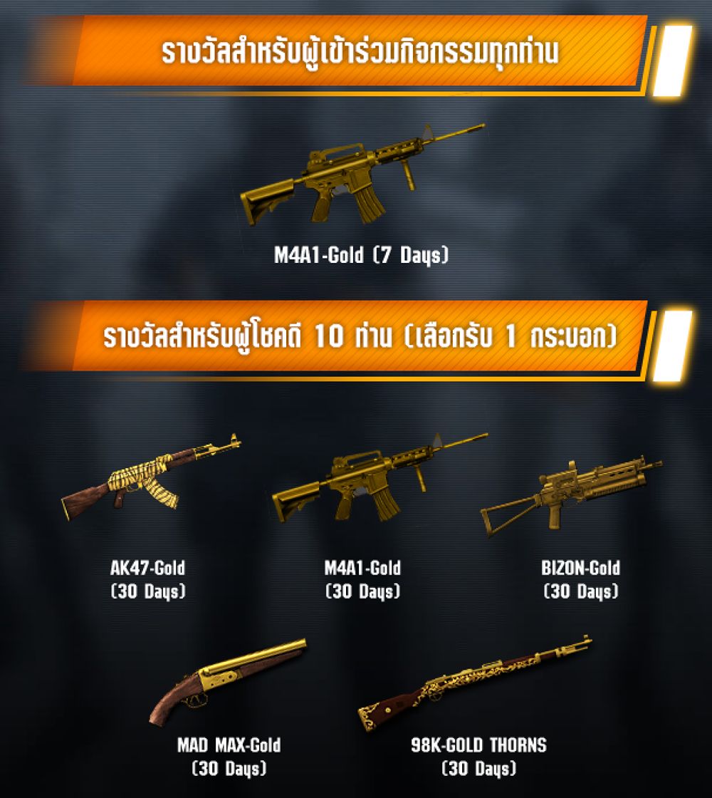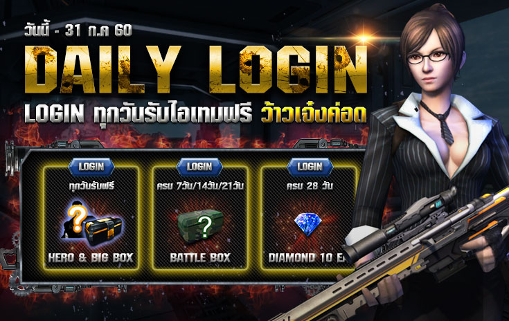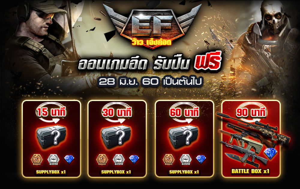 ออนไลน์เกมทุกวัน ตามระยะเวลาที่กำหนด ใครอึดใครเจ๋ง ทำได้ตรงตามเงื่อนไข ก็รับไอเทมกันไปเลยฟรีๆ!!! เริ่มกระหน่ำกระสุนให้สะใจไปพร้อมๆกันตั้งแต่ 28 มิ.ย.นี้เป็นต้นไป