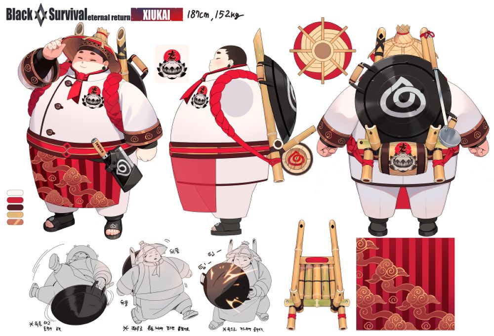 - XiuKai เชฟนักทำอาหารจากประเทศจีน ที่บินมาเกาหลีใต้ (บ้านเกิดนักสร้างเกม) เพื่อเข้าร่วมสงคราม Battle Royale ในเกมนี้ โดยเขาจะมีมีดทำอาหารเป็นอาวุธ และยังมีกระทะยักษ์เป็นโล่ห์ใช้ป้องกัน!