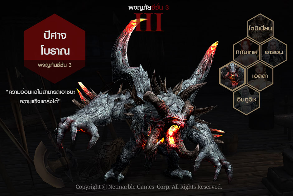 อัพเดทโหมดผจญภัย ซีซั่น 3 “การคืนชีพของแสง” ท่านสามารถออกเดินทางเพื่อพบกับการผจญภัยอย่างต่อเนื่อง พร้อมทั้งได้ไปค้นพบตำนานของบรรพบุรุษราเวน รวมถึงพบกับเป้าหมายที่แท้จริงของเหล่านักเวทย์และอัญมณีสีดำ เป้าหมายใหม่ของเหล่าราเวนคืออะไร? และเหล่าอัศวินที่ปรากฏตัวมาใหม่จะเป็นใคร? ค้นหาคำตอบได้ในซีซั่น 3ผู้เล่นสามารถรับตั๋วสุ่มอาวุธเวทมนตร์ระดับวีรชนและ 120 คริสตัลได้ เมื่อทำการผจญภัยสำเร็จในบทที่ 1 และ 2 และจัดการปีศาจโบราณ เพื่อรับรางวัลเพิ่มอีกทางทีมงานทำการอัพเดทบทที่ 1 และ 2 ในการอัพเดทรอบนี้ และตั้งแต่สัปดาห์หน้าเป็นต้นไป จะทำการอัพเดทบทใหม่ ในทุกๆวันจันทร์2. ปรับระดับในโหมดผจญภัย ซีซั่น 2 ให้ง่ายขึ้นทางทีมงานขอแจ้งการปรับระดับความยากง่ายในโหมดผจญภัย ซีซั่น 2. ผู้เล่นจะรู้สึกได้ว่ามอนสเตอร์ในซีซั่น 2 จะมีความแข็งแกร่งมากยิ่งขึ้น ทางทีมงานได้การปรับระดับความยากง่าย เพื่อให้ทุกท่านสามารถเดินทางไปยังซีซั่น 3 ได้อย่างต่อเนื่อง3. ขยายเลเวลสุงสุดจาก 45 > เลเวล 50ทำการขยายเลเวลสุงสุดเป็น เลเวล 50 เพราะมีมอนสเตอร์ที่แข็งแกร่งมากมายอยู่ในซีซั่น 3 และมอบรางวัลเพิ่มเติมเป็น ตั๋วเลือกอาวุธเวทมนตร์ 1 ใบ สำหรับผู้เล่นที่ทำการอัพเลเวลถึง เลเวล 50 สำเร็จเพิ่มแหวนใหม่ที่มีชื่อว่า “แหวนแห่งกษัตริย์” ในลิสเครื่องประดับโด่งดัง สามารถสวมใส่แหวนแห่งกษัตริย์ เพื่อเพิ่มพลังโจมตีได้ คุณสมบัติติดตัว 3 ชนิดได้แก่ พลังโจมตี, พลังโจมตีทะลุป้องกัน และ พลังโจมตี (ค่าคุณสมบัติอาจมีการเปลี่ยนแปลง) สามารถรับแหวนดังกล่าว ได้จากกล่องพิเศษ และการผสมตั้งแต่ระดับวีรชน ถึงระดับเทพเจ้า