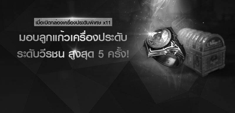 - อีกทั้งเหล่าผู้กล้ายังได้ลุ้นรับเซตเครื่องประดับในช่วงอีเว้นท์ลุ้นโชคอีกด้วย สุดพิเศษ! เมื่อซื้อเครื่องประดับพิเศษ x11 ในช่วงอีเว้นท์ผู้เล่นจะได้รับรางวัลเพิ่มขึ้นไปอีก เช่น 1 ใน 6 สุดยอดเครื่องประดับซึ่งรวมแหวนแห่งกษัตริย์ และยังจะได้รับลูกแก้ว Exp. สำหรับเครื่องประดับระดับวีรชน ที่ผู้เล่นมีโอกาสได้รับสูงสุดถึง 5 ชิ้นอีกด้วย