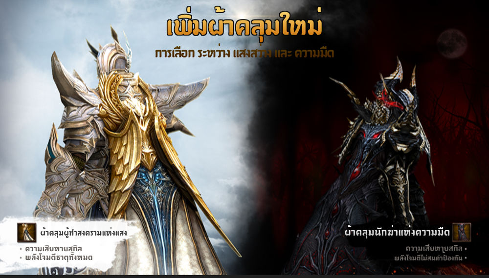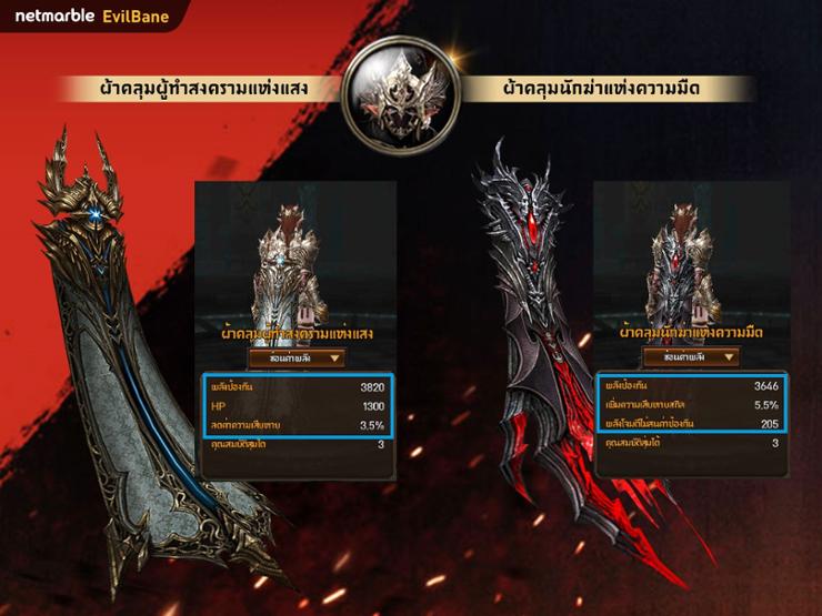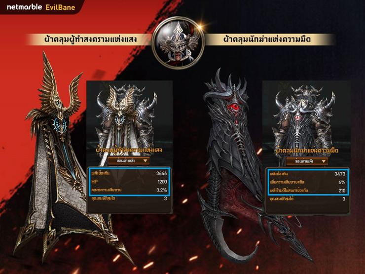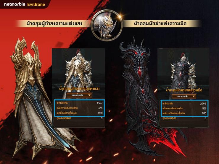 - ผ้าคลุมนักฆ่า - มีคุณสมบัติ พลังป้องกัน , ความเสียหายสกิล , พลังโจมตีไม่สนค่าป้องกัน ให้กับอัศวินทุกท่าน หากสวมใส่ผ้าคลุมนี้ จะเพิกเฉยพลังป้องกันของฝ่ายตรงข้ามอย่างสมบูรณ์แบบ และเมื่อตัวเองใช้สกิล ดาเมจก็จะเพิ่มสูงขึ้น เมื่อมีคุณสมบัติทั้ง 2 อย่างรวมกันอยู่อย่างนี้ ก็สามารถสร้างดาเมจให้ศัตรูได้อย่างเต็มที่ !