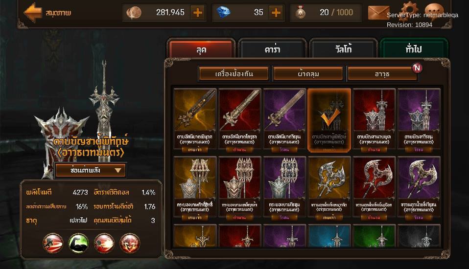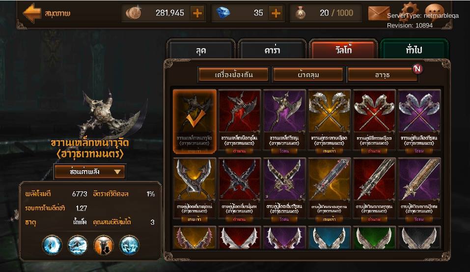 ด้วยอาวุธเหล่านี้จะสามารถเพิ่มความแข็งแกร่งให้กับผู้สวมใส่อีกทั้งมีสกิลพิเศษตัวอย่างเช่น ขวานคู่กระหายเลือดที่สามารถเพิ่มพลังการทำลายล้าง พิเศษสุด!ผู้เล่นสามารถได้รับอาวุธเหล่านี้ได้ผ่านระบบกาชาร์ที่ร้านค้าโดยตั๋วอาวุธระดับสูงกว่าวีรชน หรือมีโอกาสได้จากการผสมอุปกรณ์ที่ระดับสูงกว่าวีรชนขึ้นไป !!