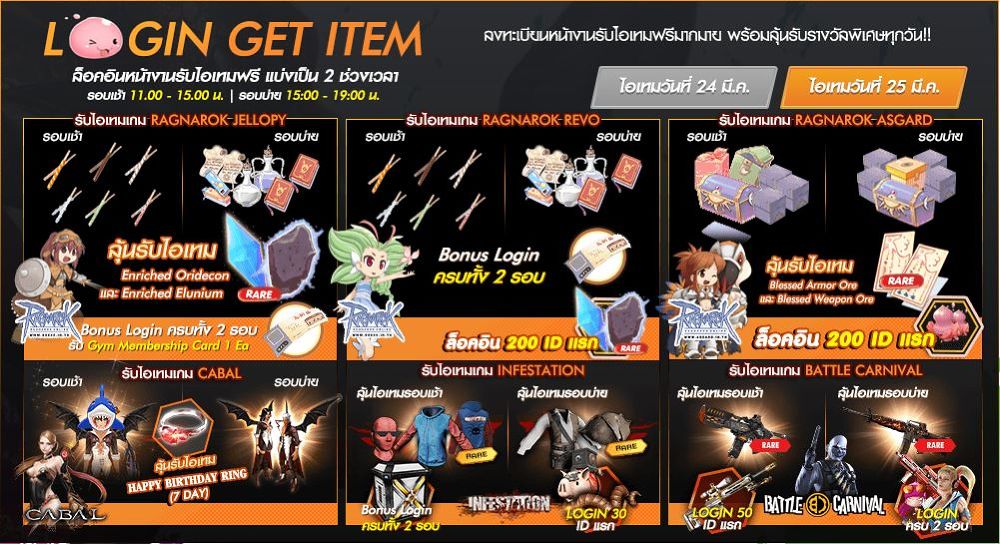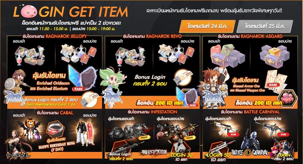 ► ลงทะเบียนหน้างานรับไอเทมเกม Ragnarok Online, Cabal, Battle Carnival, Infestation ฟรี! มีทั้งรอบเช้าและรอบเย็น