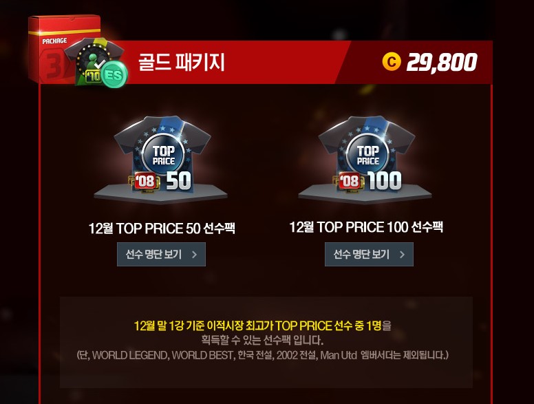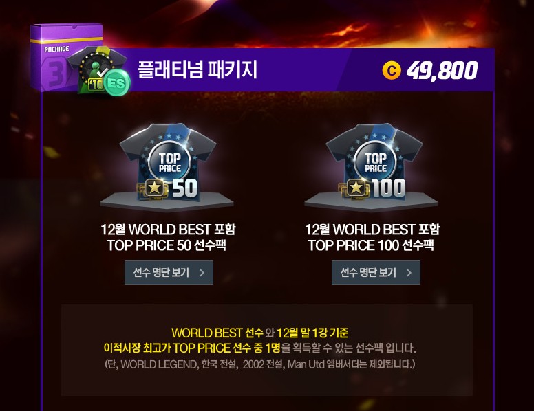 - WORLD BEST + TOP PRICE 50 package [ประจำเดือนธันวาคม] โดยคัดเลือกนักเตะจาก 50 คน