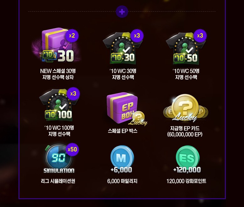 - ’10 WC 50 package โดยคัดเลือกนักเตะจาก 50 คน x 3