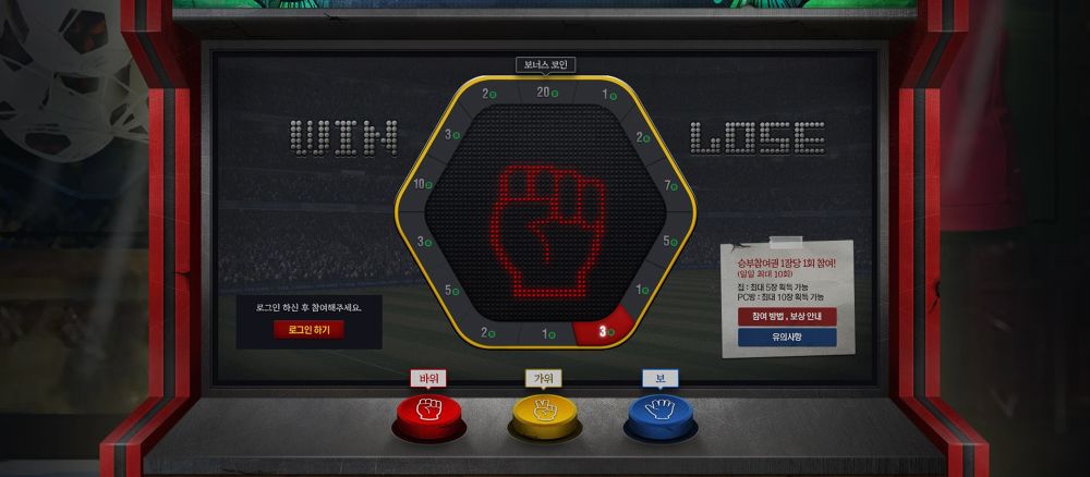1. เมื่อเล่นเกมจบในแต่ละแมตช์จะได้รับบัตรร่วมกิจกรรมเป่ายิ้งฉุบ 1 ใบ