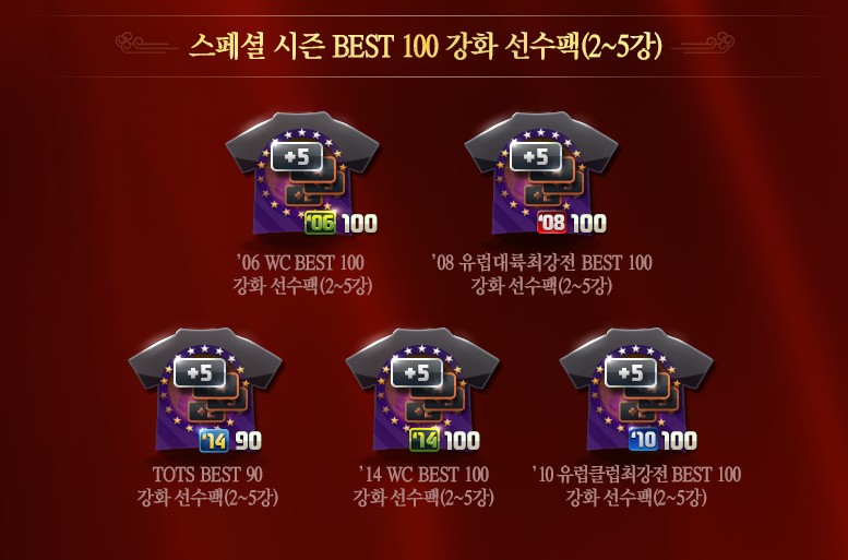 - ‘14 WC BEST 100 package โดยคัดเลือกนักเตะจาก 100 คน **ค่าพลัง +2 ถึง +5