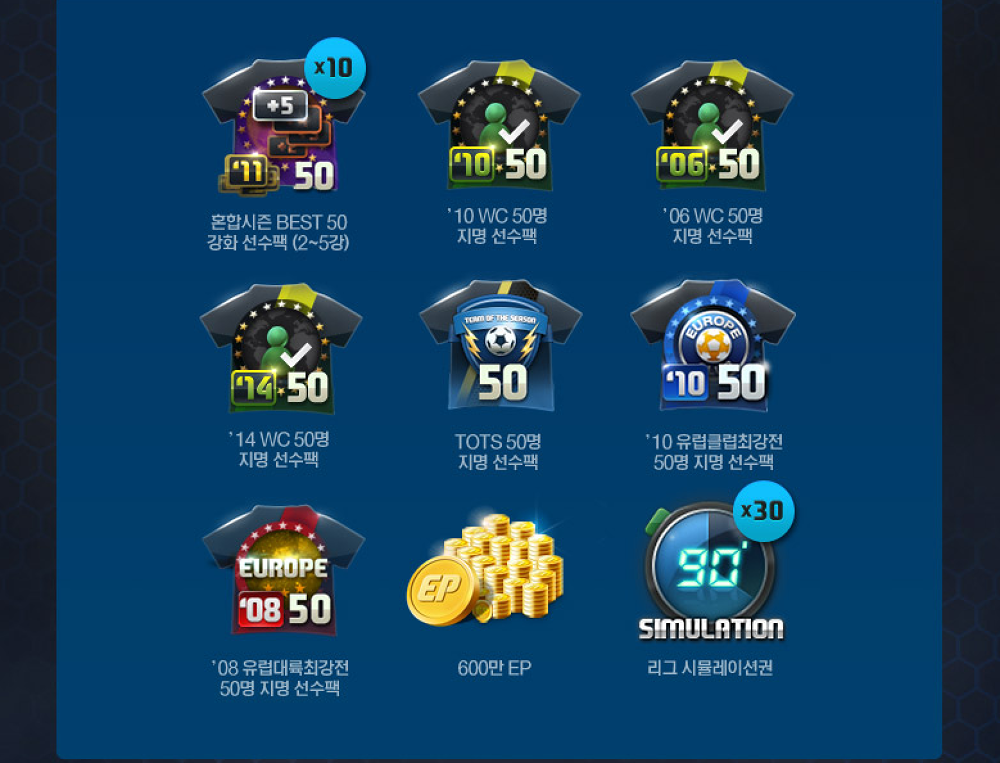 • All Season BEST 50 package (2~5) โดยคัดเลือกนักเตะจาก 50 คน x10