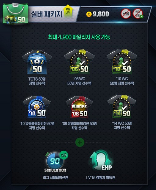 • ’10 WC 50 package โดยคัดเลือกนักเตะจาก 100 คน