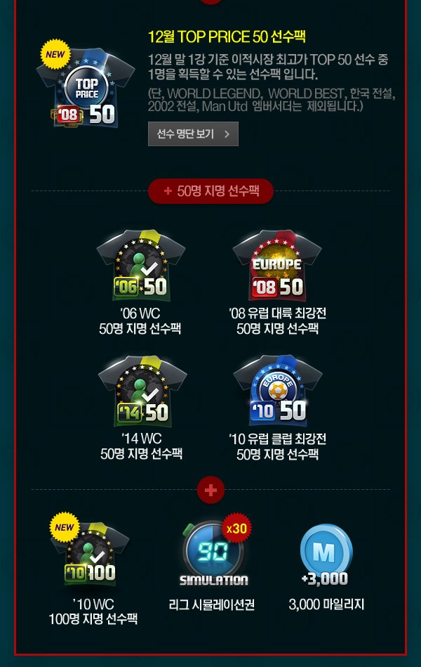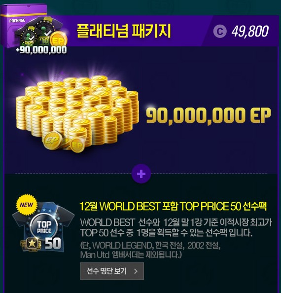 WORLD BEST + TOP PRICE 50 package [ประจำเดือนธันวาคม] โดยคัดเลือกนักเตะจาก 50 คน