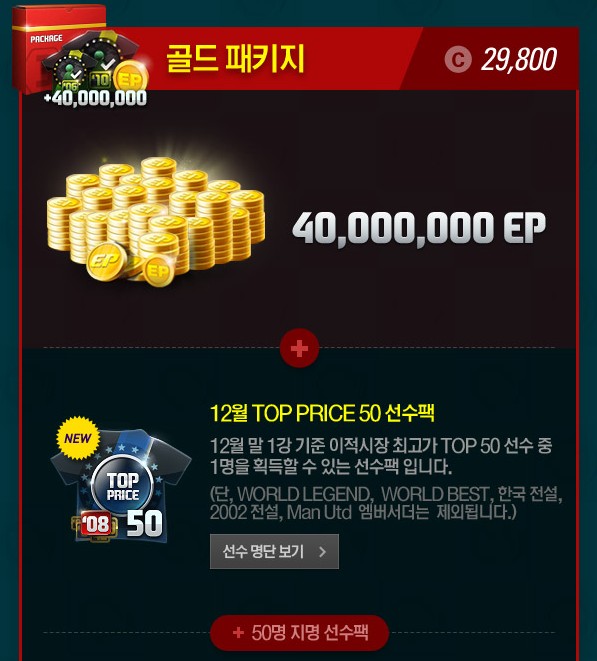 TOP PRICE 50 package [ประจำเดือนธันวาคม] โดยคัดเลือกนักเตะจาก 50 คน