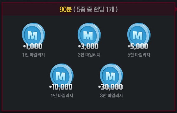 ครบ 90 นาที จะสุ่มรับ Mileage Coin ดังนี้