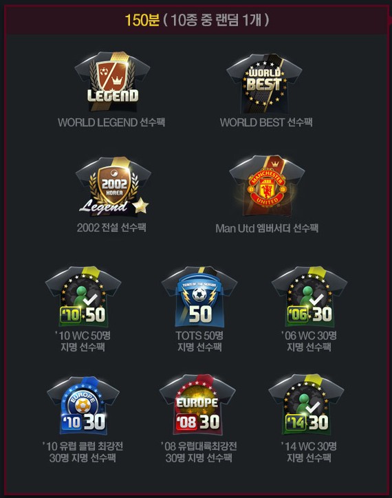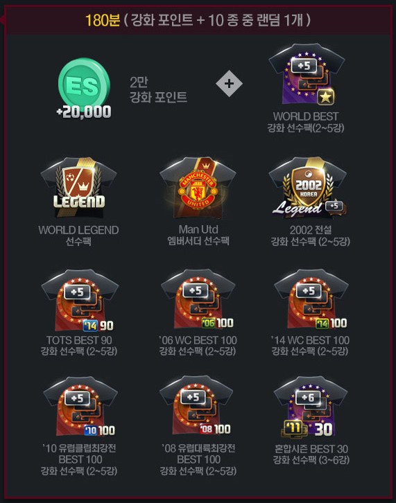 - ‘14 WC BEST 100 package โดยคัดเลือกนักเตะจาก 100 คน ค่าพลัง +2 ถึง +5
