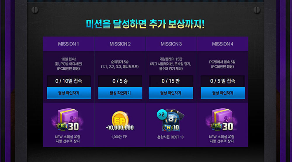 MISSION 1 : เมื่อล็อกอินผ่านทาง PC หรือ อินเตอร์เน็ตคาเฟ่ ครบ 10 วัน จะได้รับ