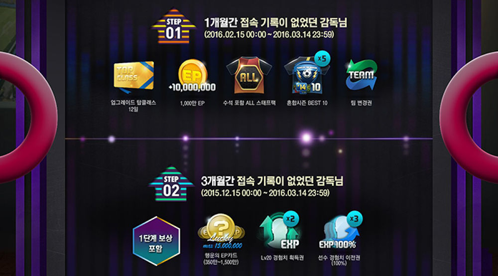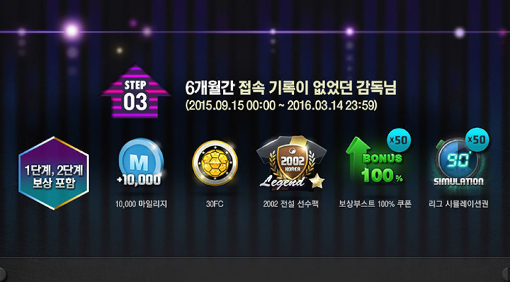 STEP 1 : สำหรับผู้ที่ไม่ได้ล็อกอินเข้าเกมเป็นเวลา 1 เดือน (ตั้งแต่ 2015.12.15 - 2016.03.14) จะได้รับ
