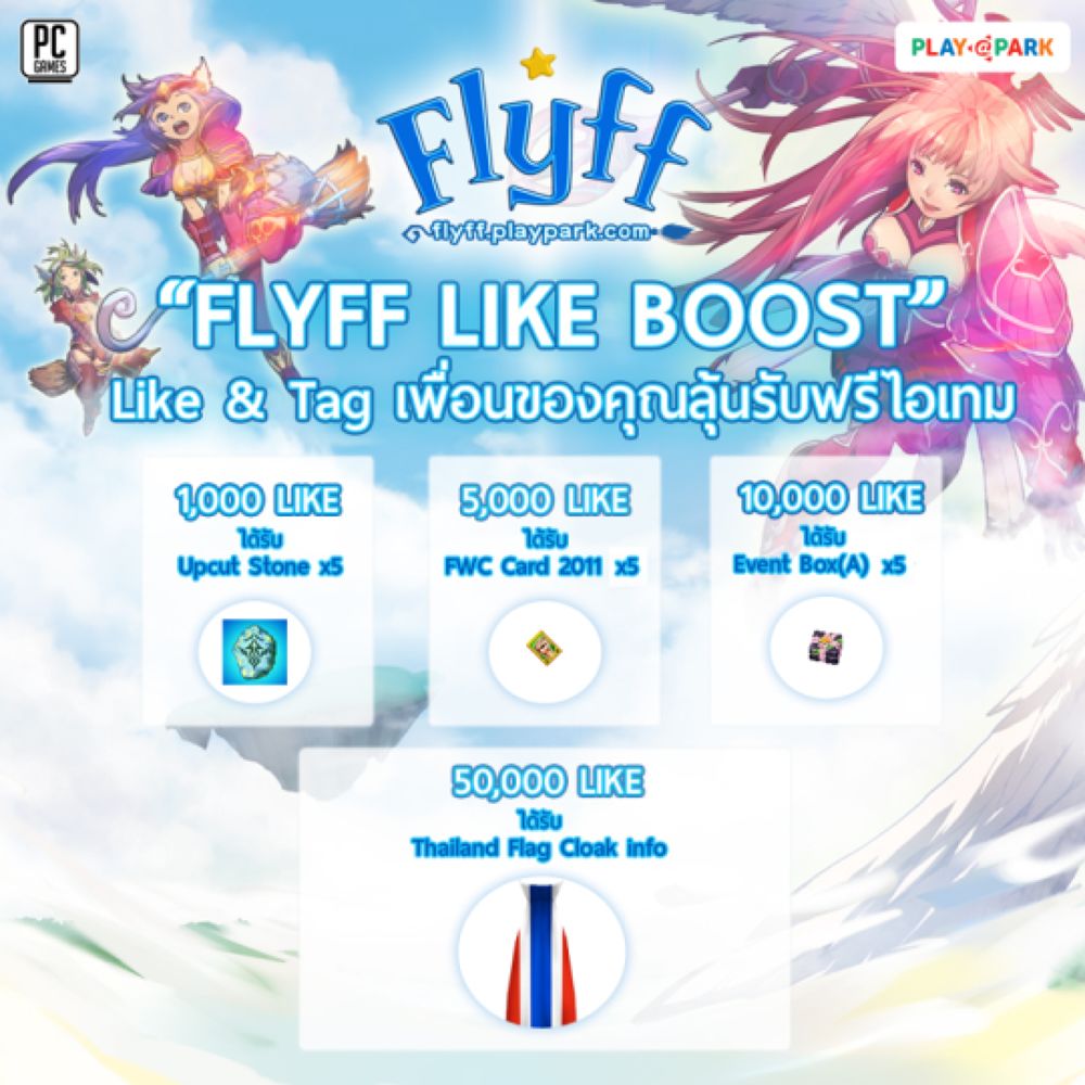 - กิจกรรม Flyff Like Boost แค่กดไลค์ FanPage PlayPark Flyff TH ก็รับไอเทม Thailand Flag Cloak info ถาวร ไปใส่เลยฟรีๆ (คลิกที่นี่)