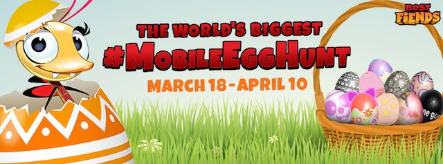 Best Fiends (ฟรีบน iOS, Android, Amazon, Facebook): จนถึงวันที่ 10 เมษายนนี้ ผู้เล่นของเกมแนว line-drawing puzzle game นี้ ได้มีการร่วมมือกันเพื่อจัดอีเว้นออกมาภายใต้ชื่อว่า "World’s Biggest #MobileEggHunt" เพื่อให้เพื่อน ๆ ได้ค้นหาไข่ปริศนาทั้ง 12 ใบ ที่ได้รับการดีไซน์จาก Youtube Star (ส่วนใครที่มีของรางวัลชิ้นนี้อยู่แล้วเมื่อสำเร็จภารกิจจะได้รับ gold และ diamonds แทน) ในฟีเจอร์นี้  Youtube Star จะออกมาใบ้คำใบ้โดยการ อัพโหลดคลิปเพื่อเป็นเบาะแสในการค้นหาไข่ทั้ง 12 ใบ มี 20 Level ให้ทำถึงจะสำเร็จภารกิจทั้งหมดได้