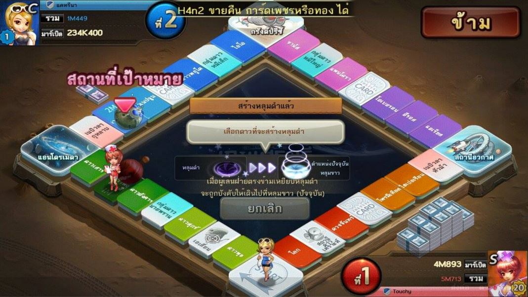 2. แผนที่อวกาศ: ภายใต้ดวงดาวมากมาย หลุมดำ ถือเป็นทีเด็ดในการพลิกเกมส์ เพราะหลุมดำจะส่งผลให้ผู้เล่นที่ตกช่องนั้นถูกส่งไปอีกจุด พยายามเซตหลุมดำไปยังดาวที่ต้องจ่ายค่าผ่านทางมากที่สุดให้ฝั่งตรงข้ามล้มละลาย