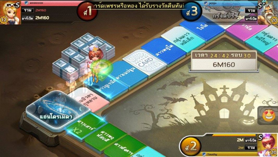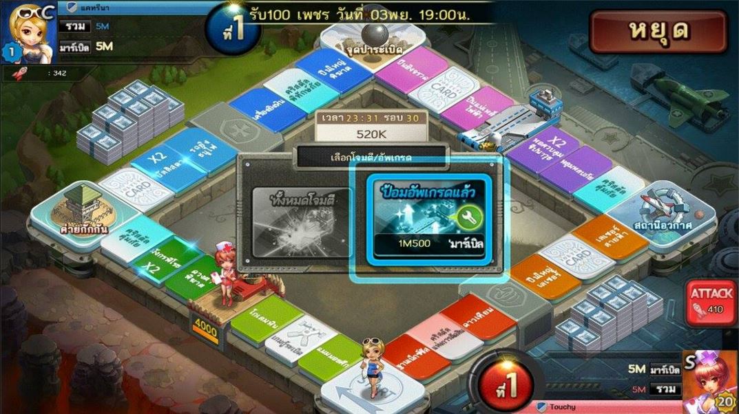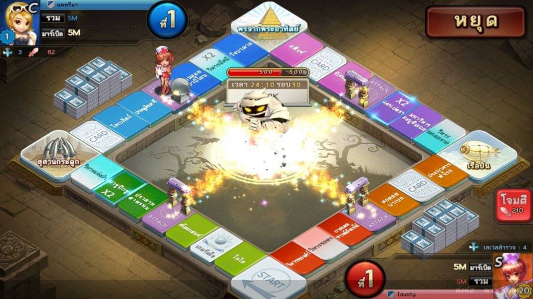 3. แผนที่ผจญภัย: การผจญภัยในอาณาจักรโบราณโดยการทำลายหอคอยที่กักขังบอส เมื่อบอสปรากฏจะได้เงินรางวัลและหากเรา กำจัดบอส ได้ก็จะชนะไปเลย งนนี้ขอบอกว่าแต้มการทอยลูกเต๋า มีผลต่อการโจมตีบอสด้วยนะ