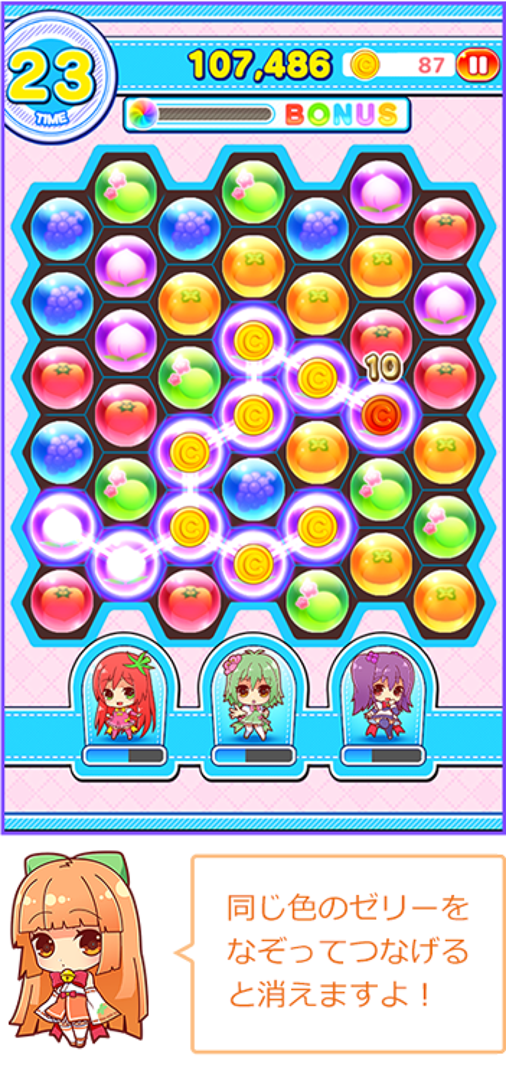 Geleemix Puzzle Partyเป็นเกมแนว One-Stroke Puzzle ที่มีบรรยากาศสดใส และตัวละครสาวๆ สุดน่ารักถึง 6 นาง อยู่ภายในเกม สำหรับตัวเกมของ Geleemix Puzzle Party ถือเป็นเกม Puzzle ที่มีรูปแบบการเล่นสุดเรียบง่าย เพราะในหนึ่งเกม จะมีเวลาให้เรา 1 นาที สำหรับการลากเจลลี่สีเดียวกันตั้งแต่ 2 ชิ้นขึ้นไป ให้ได้มากที่สุด และยิ่งเราทำเร็วเท่าไหร่ ติดคอมโบมากเท่าไหร่ เราก็จะได้คะแนนที่มากขึ้นเท่านั้น ซึ่งมันก็ดูคล้ายๆ กับเกมพัซเซิ่ลทั่วๆ ไป ถ้าหากเกมนี้ไม่มีระบบตัวละครสาวๆ เข้ามาเกี่ยว เพราะถ้าหากเราเลือกตัวละครสาวๆ คนไหนมาเซ็ตไว้ มันจะส่งผลต่อการทำคะแนนรูปแบบต่างๆ ของเราต่อเจลลี่อีกด้วย นอกจากนี้ตัวเกมยังมีระบบ "Bonus Time""Bonus Gauge""Bonus Continue" รวมไปถึง "Mission Bingo" ที่จะทำให้เราทุกคนเพลิดเพลินอยู่กับได้นานเท่านาน