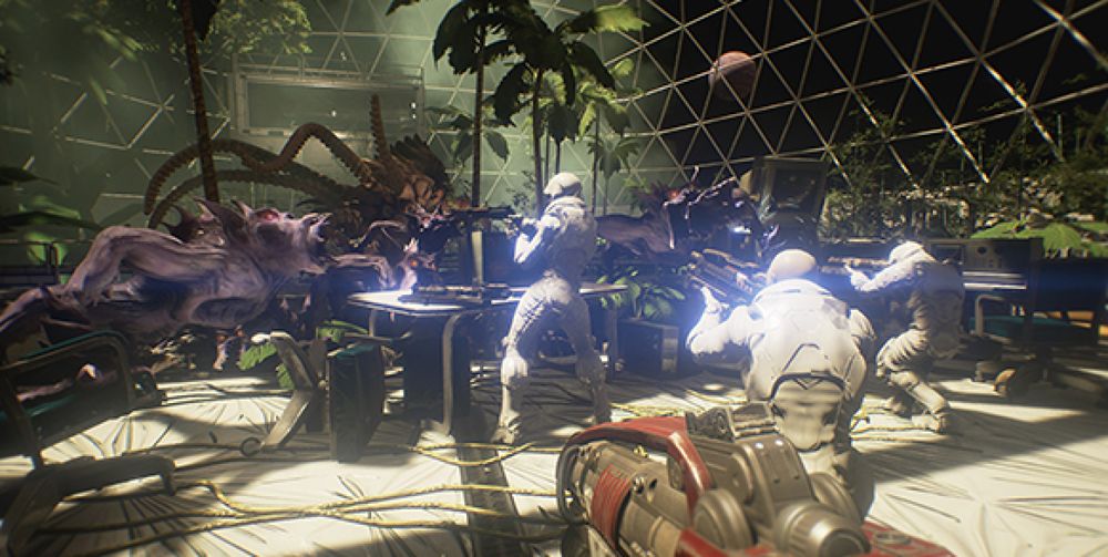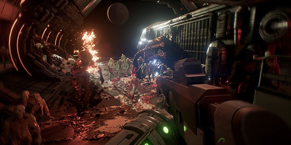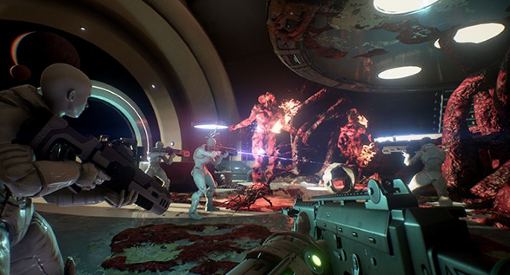 ส่วนที่สองก็คือ การเป็นเกมแนว FPS แอคชั่นสยองขวัญ ถึงแม้จะบอกว่า ก็นี่ยานเราสร้างเอง ต่อเติมเองจะกลัวอะไร แต่เหล่าเอเลี่ยนที่มาบุกยาน ทำให้บรรยากาศเกมเปลี่ยนไปโดยสิ้นเชิง มันเต็มไปด้วยการดวลปืนกันในห้องแคบๆ บรรยากาศชวนอึดอัด และการออกแบบเอเลี่ยนที่น่ากลัว พ่วงด้วยคุณสมบัติการโจมตีที่ไม่ซ้ำกัน ซึ่งนอกจากมันมาเพื่อทำลายยานเราแล้ว มันยังจะมากินสมองผู้เล่นแบบถึงเนื้อถึงตัวด้วย ใครที่ชื่นชอบแนว Sci-fi ที่มีอะไรมากกว่าการยิงกันธรรมดาละก็เตรียมตัวเก็บตังต์ไว้ซื้อกันได้นะจ๊ะ อิอิ