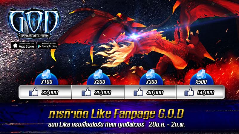 เงื่อนใขกิจกรรม : ชวนเพื่อนมากด Like Fan Page : MMOG Guardian of Dragon ได้ครบตามเงื่อนไข