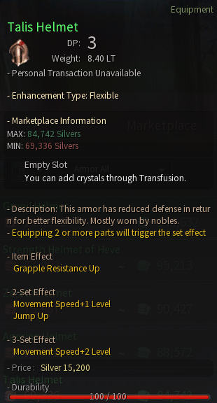 มาถึงชุดเกราะที่เหมาะกับสายวิ่งไว ใครอยากเดินเร็ว ชิวๆ ก็ต้องชุด Set นี้เลยค่ะ ส่วนรายละเอียดมีดังต่อปนี้- ชุดเกราะ Set นี้สามารถติดตั้งอัญมณีได้เพียงแค่ 1 ช่อง- สวมใส่ครบ 2 ส่วนจะเพิ่มสเตตัสความเร็วในการเคลื่อนที่ [Movement Speed] ให้ตัวละคร 1 เลเวล กับ กระโดนสูงขึ้น- สวมใส่ครบ 3 ส่วนจะเพิ่มสเตตัสความเร็วในการเคลื่อนที่ [Movement Speed] ให้ตัวละคร 2 เลเวล- ส่วนหัวจะเพิ่มป้องกันการถูกจับทุกชนิด, ส่วนเกราะเพิ่มการฟื้นฟู Max MP, WP และ SP 5 Point, ส่วนมือเพิ่มสเตตัสคริติคอล [Critical Hai] ให้ตัวละคร 1 เลเวล และ เพิ่มสเตตัสความเร็วในการเคลื่อนที่ [Movement Speed] ให้ตัวละคร 2 เลเวลถือว่าเป็นอีกหนึ่ง Set ที่เคยได้รับความนิยมก่อนหน้านี้ แต่ปัจจุบันกลายเป็นชุดที่ไม่ค่อยมีคนใช้กันสักเท่าไหร่ แต่ถ้ามองในเรื่องของประสิทธิภาพ ถือว่าชุดเกราะนี้สมบูรณ์แบบมากเลยทีเดียว เพราะช่วยในการเพิ่มความเร็วในการเคลื่อนไหวของตัวละครได้เป็นอย่างดี แต่น่าเสียดายที่มันมีออฟชั่นภายในชุดเยอะ เลยทำให้เราติดตั้งอัญมณีได้เพียงแค่ 1 ช่องเท่านั้น แต่ถ้าใครที่อยากจะกิลด์วอ หรือ PvP ชุดนี้เหมาะสุดๆ เลยนะ ขอบอก!!!