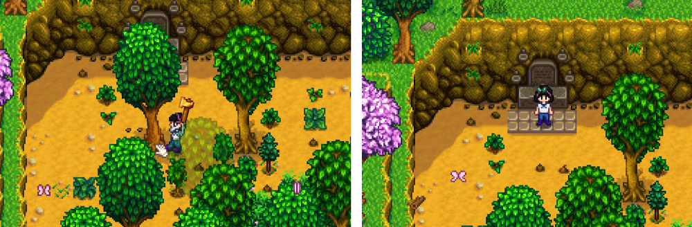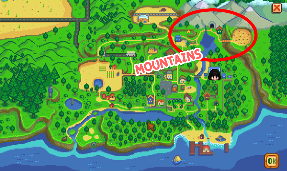 อยู่ทางด้านบนของฟาร์ม เป็นทางเดินไปสู่แมพ Mountains ไม่มีอะไรนอกจากของป่าให้เก็บ