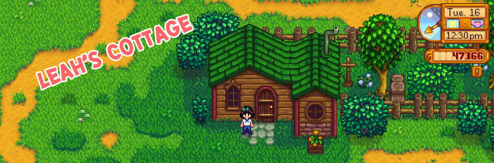 กระต๊อบของ Leah อยู่ด้านล่างของ Marnie's Ranch ที่ต้องสนิทกับเธอให้มีหัวใจอย่างน้อย 2 ดวงถึงจะเข้าไปได้