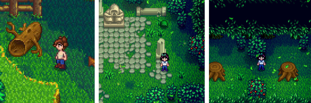 ป่าลับ ในตอนแรกจะมีท่อนซุงขวางอยู่ หากอัพเกรด Axe อย่างน้อยระดับ Steel ก็จะสามารถทำลายท่อนซุงและเข้าไปในป่าได้ สิ่งที่เราสามารถพบได้ในป่า คือ